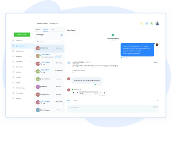 Utilize key features like 2 way messaging, ringless voicemail drops, and communicate directly with your customer on channels like Facebook Messenger right in the conversations area.